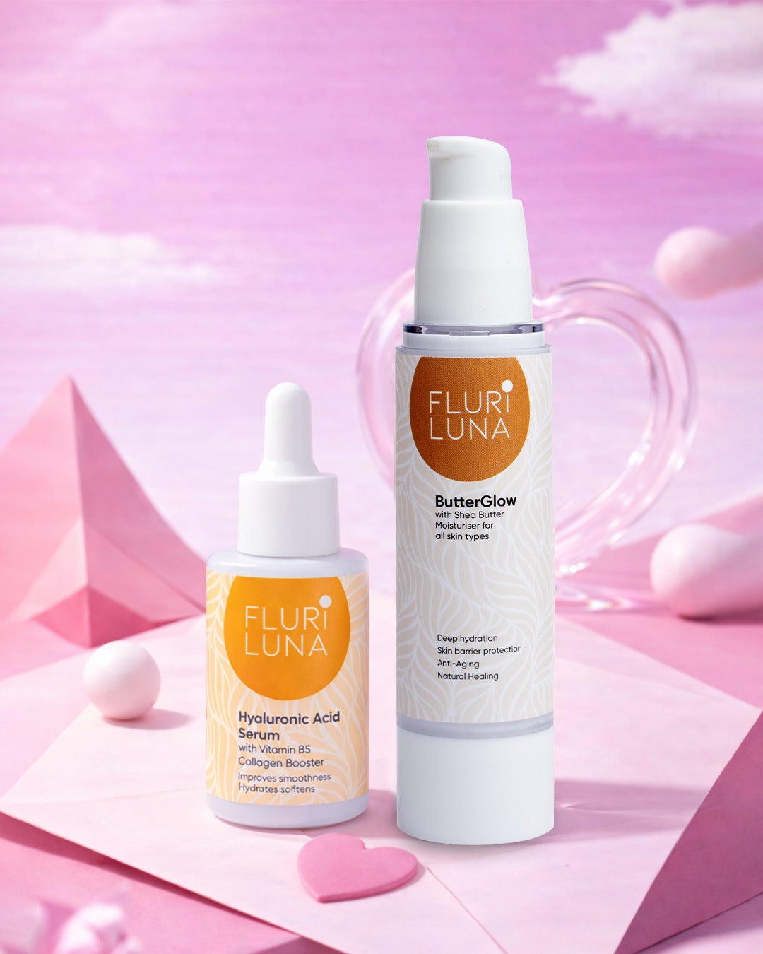 Protect your skin’s natural beauty with the FluriLuna Skin Protection Bundle, featuring our Hyaluronic Acid Serum and Butter Glow Mosturiser. This dynamic duo works in perfect harmony to brighten, hydrate, and rejuvenate your complexion, giving you that radiant, dewy glow you’ve always desired.